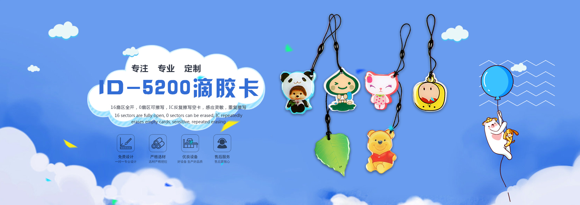 質(zhì)量過硬、科技創(chuàng)新。公司為保證產(chǎn)品的質(zhì)量,我們在制造工藝上不斷創(chuàng)新,公司目前采用是行業(yè)上靠前的全自動上線機,全自動碰焊機,與傳統(tǒng)的人力繞線與手工焊接技術相比,頻率更精確,質(zhì)量更穩(wěn)定,讀卡距離與平整度都很大的提升。完備的無塵生產(chǎn)車間,全新的德國海德堡四色印刷機,先進的層壓機,從而保障印